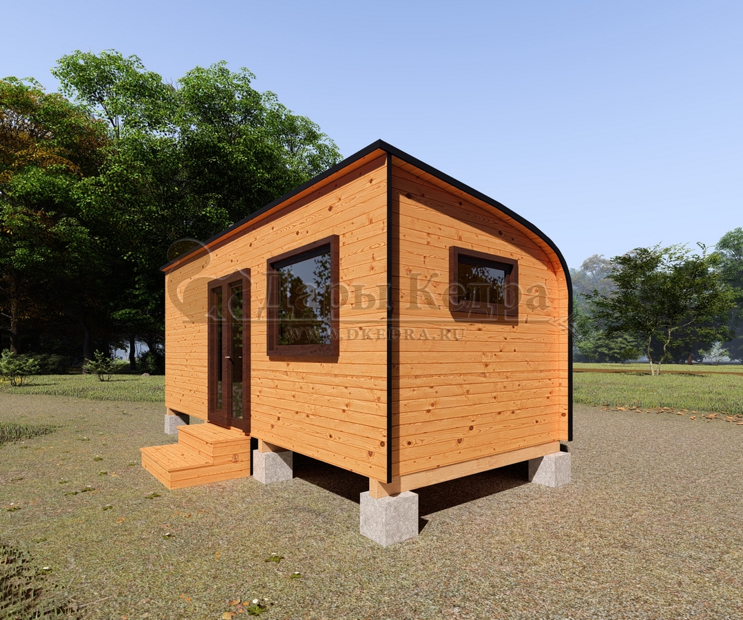 Симбиоз круглой и квадратной бани-бочки. Разработано с учётом эргономики, в ней так же просторно, как и в квадро-бочке, но при этом полукруглая крыша не дает задерживаться снегу и влаге на кровле. А еще такая баня безусловно красивая, мобильная и доступная каждому!