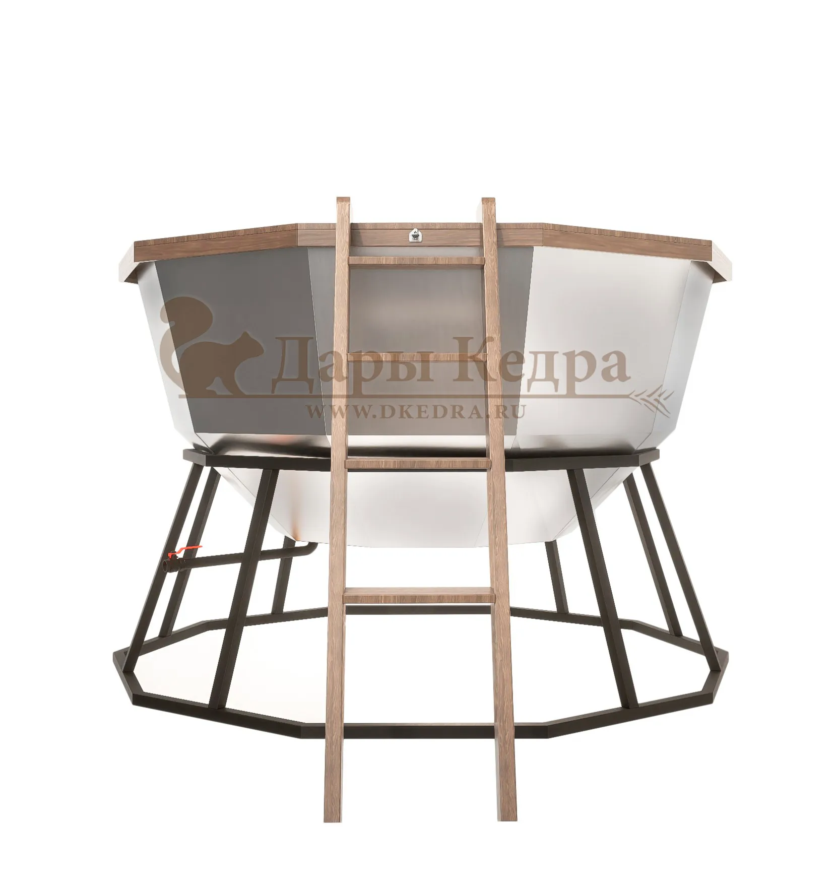 Прочная и удобная лестница из металла с обшивкой из кедра позволит комфортно подниматься и погружаться в воду (5 ступеней и площадка).