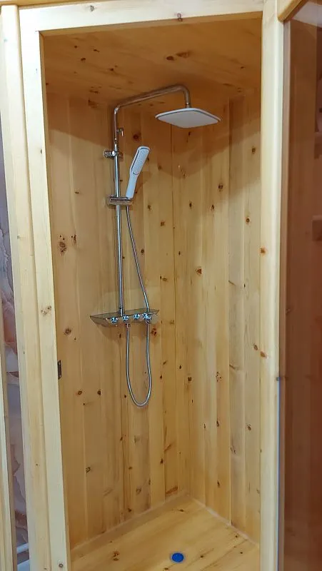Купили душевую год назад, пользуемся постоянно, нареканий нет, но ухаживать и следить, конечно, надо. Это ведь дерево! Живой материал)) Ему надо дышать, отсутствие проветривания не есть хорошо! Душевая из дерева, на мой взгляд, это супер решение, когда везде пластик, так хочется быть поближе к природе. Запах кедра повсюду, полный восторг и для здоровья гораздо полезнее такая душевая.