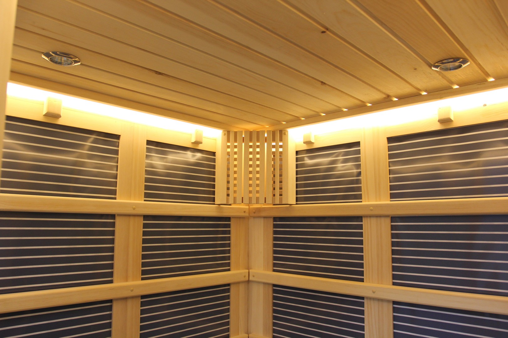 Это специально оборудованная кабина из липы для прогрева тела человека сухим теплом. Воздух в таких парных не нагревается. Инфракрасные лучи воздействуют на тело, равномерно прогревая мышцы, суставы и органы. Керамические излучатели похожи на лампы, имеют высокую температуру нагрева, поэтому защищены противоожоговыми решетками. Тело человека в таких саунах нагревается интенсивнее. Работает кабина за счет электричества. Двухместная инфракрасная сауна с керамическими излучателями подойдет как для домашнего использования, так и для коммерции.