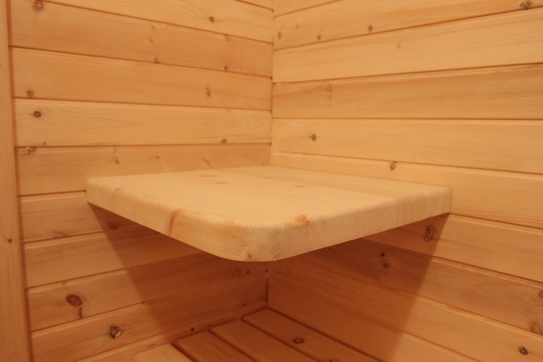 Столик в раздевалке будет удобен при длительном пребывании в бане.