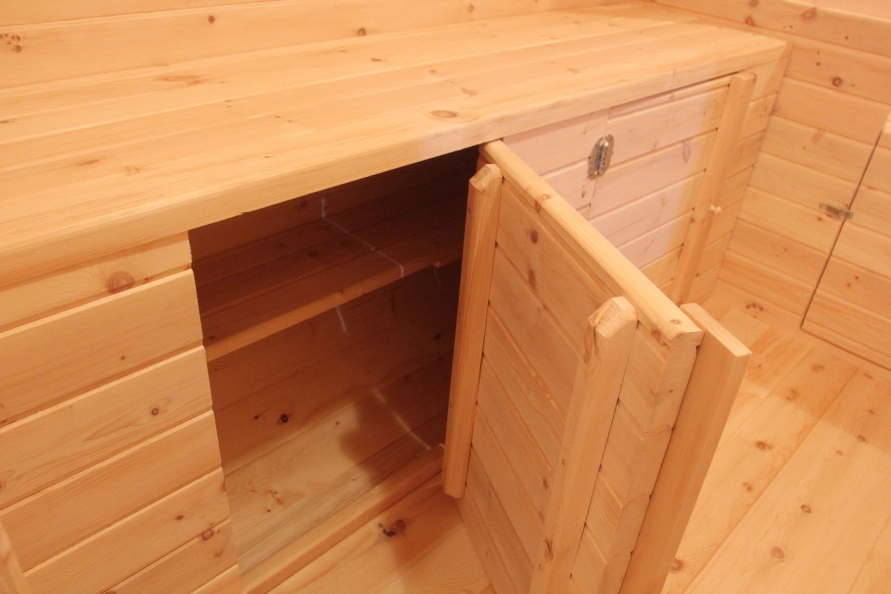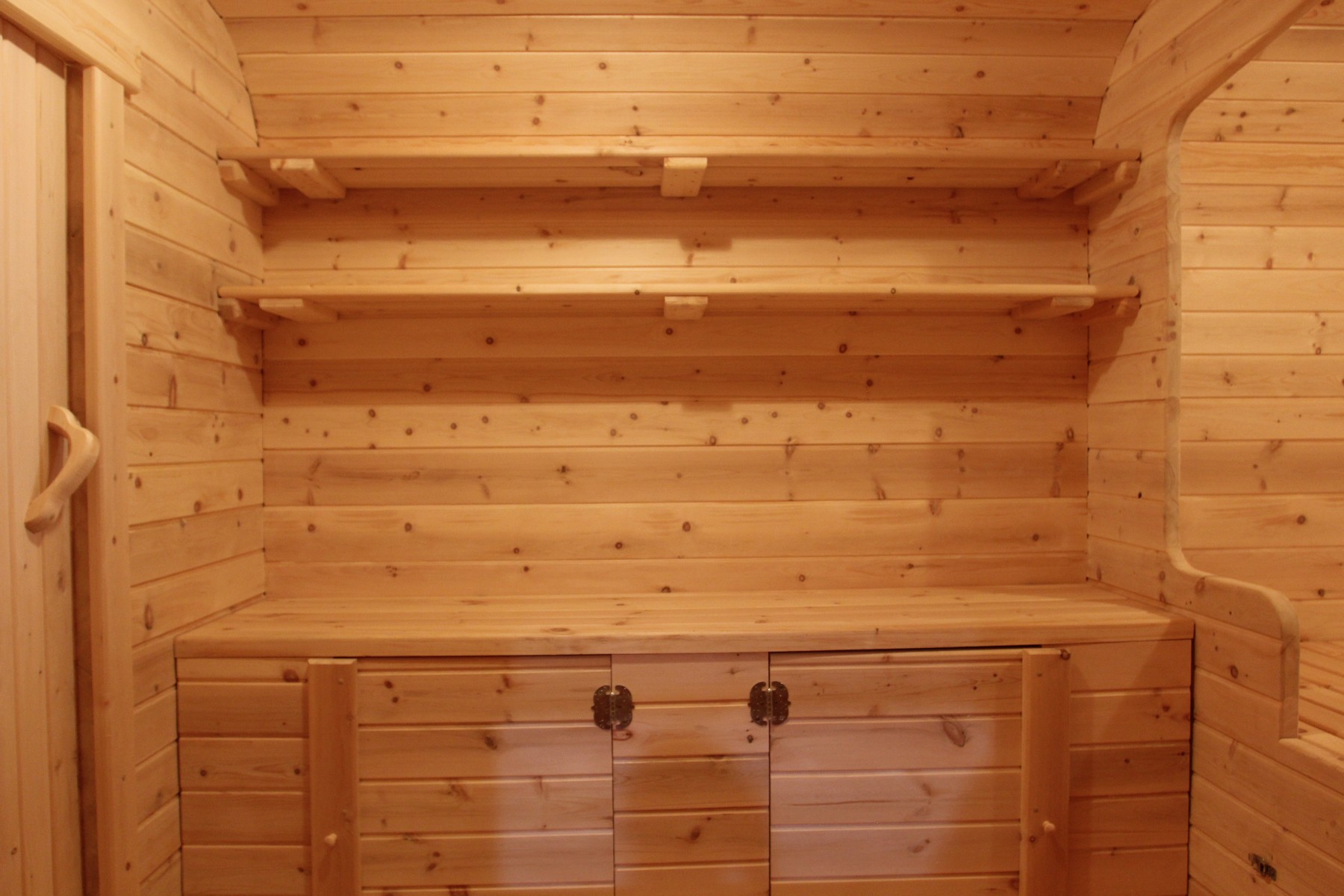 Для удобства размещения бытовых мелочей обязательно добавьте небольшие шкафчики с дверцами (2 шт) - 15 000 руб и верхние открытые полки (2 шт) - 5 000 руб. Всё необходимое в бане или доме должно быть всегда под рукой!