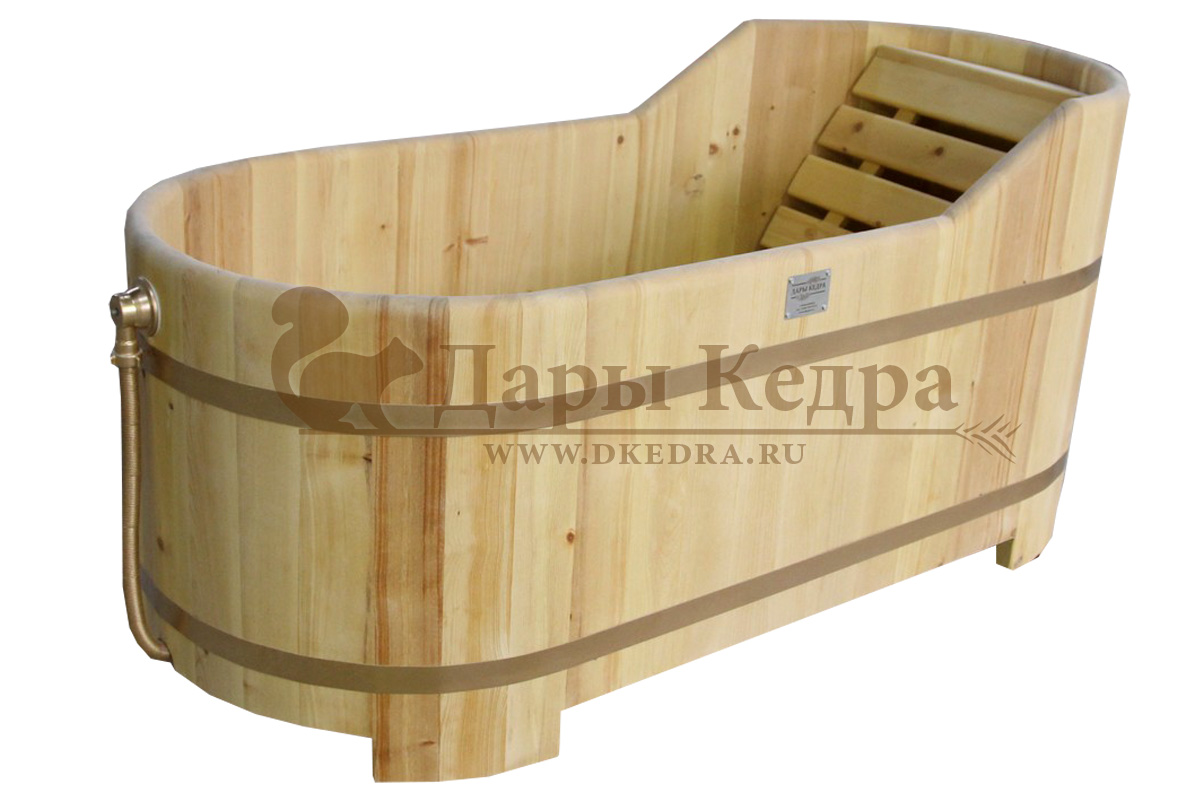 Деревянная ванна из кедра Деревянная ванна из кедра создаст уютную атмосферу в вашей ванной комнате, бане или спа-салоне. При взаимодействии кедра с водой активируются эфирные масла и фитонциды, что делает принятие ванны не только приятным, но и полезным. Ванна оснащена подспинником, поэтому во время процедур можно принять удобное положение. При правильном уходе срок службы изделия более 20 лет.