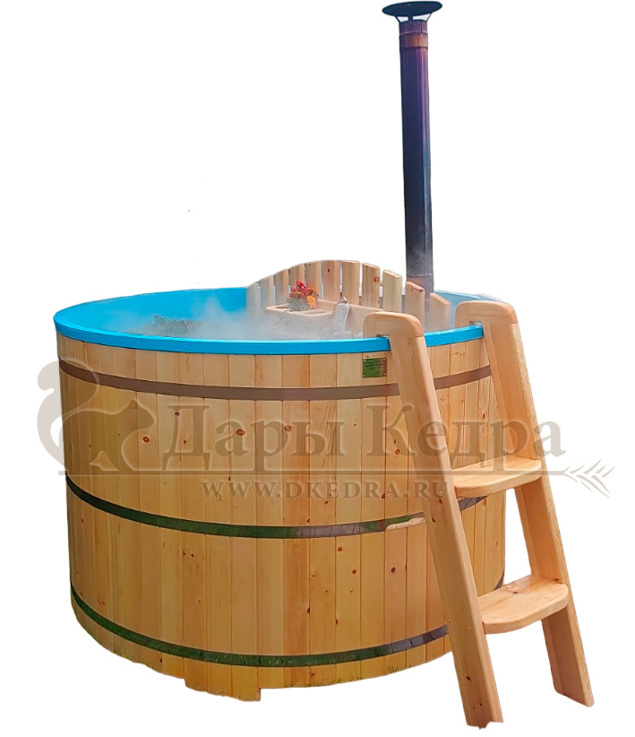Фурако круглая из кедра со встроенной печью Это уличная баня, которой можно пользоваться круглый год. Купель представляет собой круглую емкость для воды, внутри которой располагаются сиденья из кедра. Нагрев воды происходит за счет встроенной печи, которая находится внутри купели за перегородкой. Рекомендуем приобрести термокрышку и весло для перемешивания воды для ускорения нагрева. Для удобства пользования японская баня фурако оборудована внешней и внутренней лестницей из кедра. В комплектацию этой модели входит совок с длинной ручкой, который позволяет извлекать угли и золу после эксплуатации изделия. Целебная древесина кедра богата фитонцидами и эфирными маслами, которые активируются при нагревании. Таким образом, во время процедур парения организм насыщается полезными веществами.