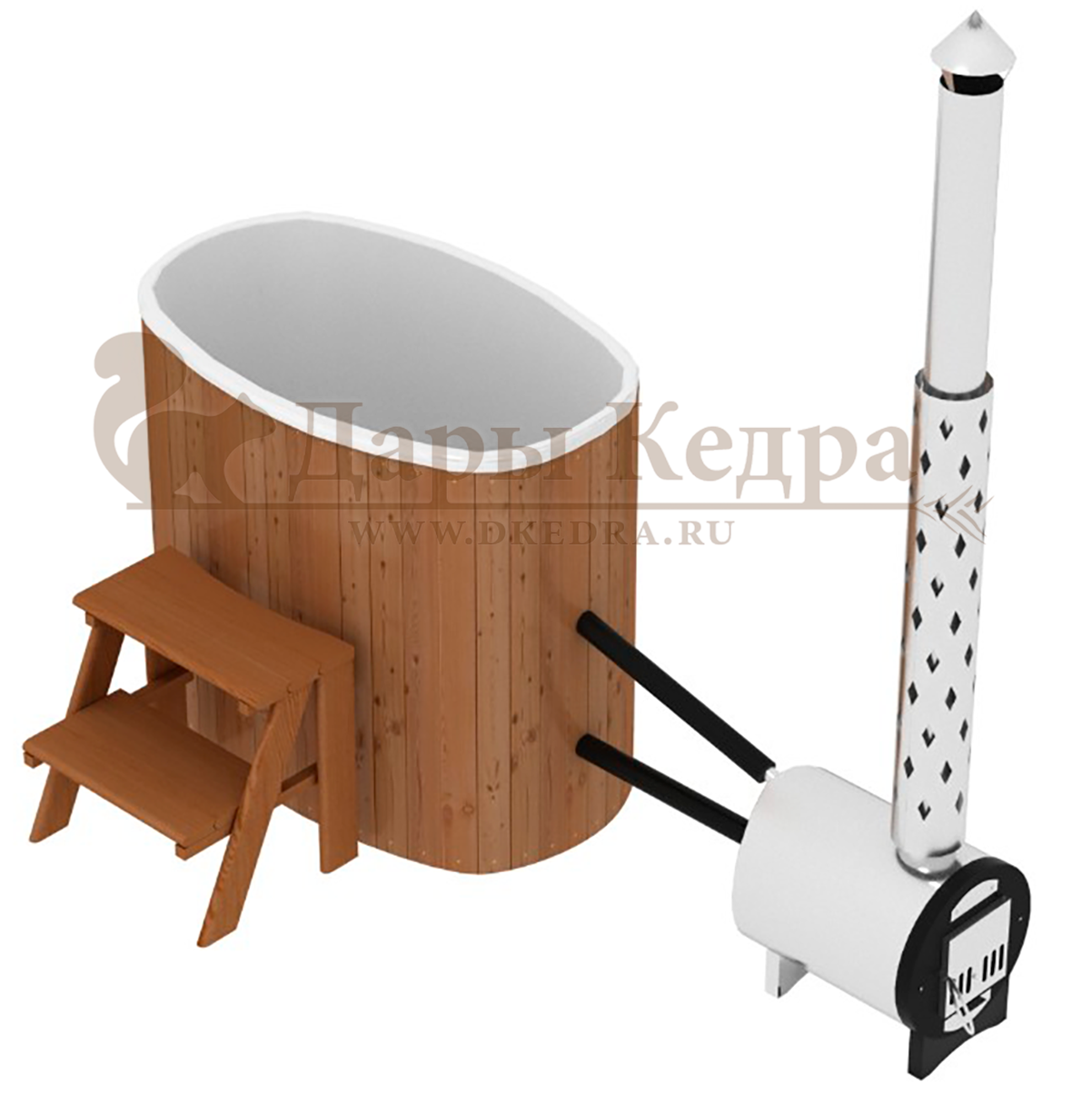 • Финская овальная композитная купель с подогревом (с печкой) «НОТА 79 с печью 25 квт» Это уличная подогреваемая купель с овальной внутренней чашей, которая изготовлена из современного прочного и термоустойчивого материала (композита). Форма чаши обеспечивает комфортную посадку во время принятия процедур. Для удобства пользования купель оборудована приставной лестницей. Подогрев воды осуществляется внешней печью с дымоходом. Композитная вставка придает купели красивый внешний вид, продлевает срок службы и облегчает уход за изделием. Парение на свежем воздухе – это отличный способ укрепить здоровье и поддержать организм в тонусе.