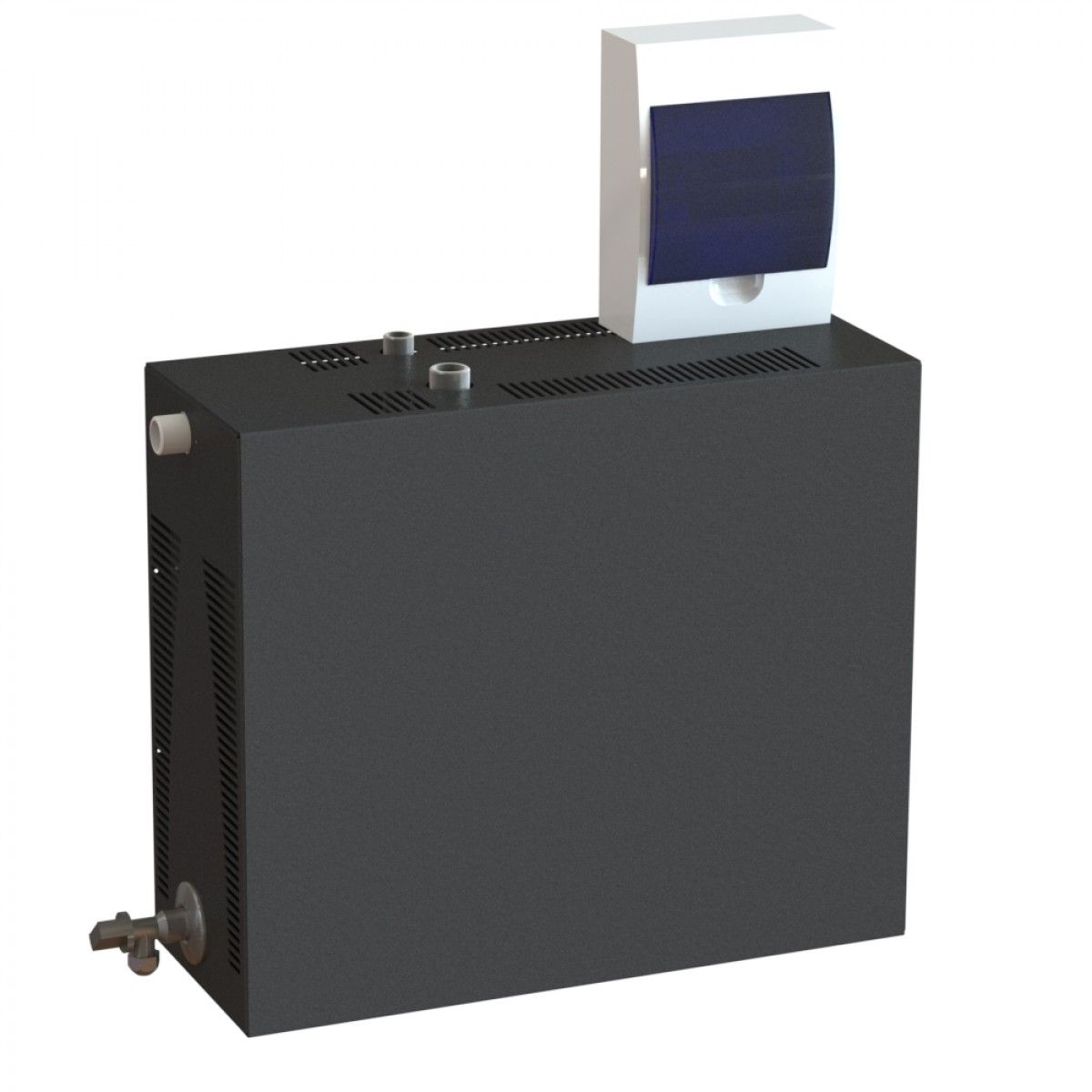 • Парогенератор проточный с выносным пультом управления, 18 кВт Проточные парогенераторы подключаются к водопроводу и автоматически добавляют воду в прибор при ее расходовании. Парогенератор служит для образования пара в саунах, хамамах, банях и душевых кабинах. Мощность стоит выбирать в зависимости от объема парной. Для удобства пользования парогенератор имеет выносной пульт управления, который позволяет установить температуру, мощность и время процедур парения. При достижении необходимой температуры происходит автоматическое прекращение подачи тепла для нагрева воды. При снижении температуры более чем на 3°С температурный датчик снова включает подогрев. Таким образом время непрерывной работы парогенератора составляет более 12 часов.