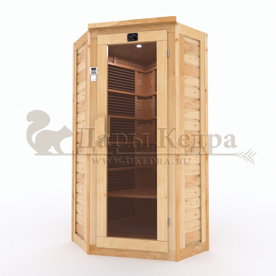 • Одноместная угловая инфракрасная сауна кабина из кедра с керамическими излучателями Это специально оборудованная кедровая кабина для прогрева тела человека сухим теплом. Воздух в таких парных не нагревается. Инфракрасные лучи воздействуют на тело, равномерно прогревая мышцы, суставы и органы. Керамические излучатели похожи на лампы, имеют высокую температуру нагрева, поэтому защищены противоожоговыми решетками. Тело человека в таких саунах нагревается интенсивнее. Работает кабина за счет электричества. Установка сауны в угол, позволяет рационально использовать пространство помещения. Подходит как для домашнего использования, так и для коммерции. Обращаем Ваше внимание что в стандартную комплектацию входит трапик для ног, но вы можете его заменить на цельный пол совершенно бесплатно! Целебная древесина кедра и инфракрасные лучи благотворно влияют на организм человека в целом. При регулярном использовании инфракрасной сауны укрепляется иммунитет, улучшается кровообращение и состояние кожи, выводятся токсины.